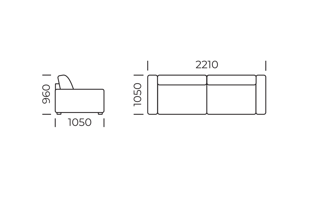 - Ширина дивана:2210 мм