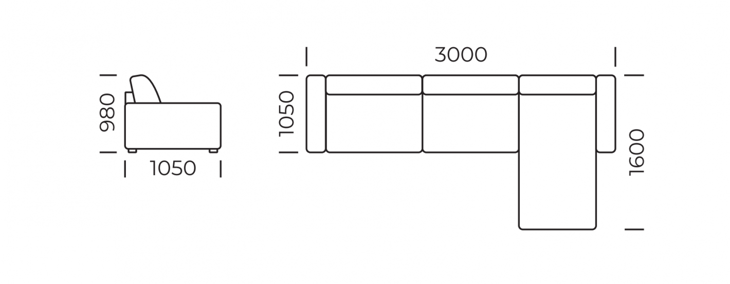 - Ширина дивана:3000 мм