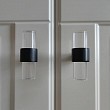 Мебельная ручка из прозрачного акрила в сочетании с матовым черным металлом. Визуальная лёгкость, благодаря прозрачности и лёгкий акцент строгости -черное крепление.