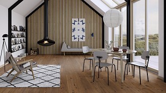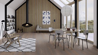 Коллекция Chaletino – крупномасштабная широкая доска из дуба, предназначенная для декорирования больших залов. Продуманный дизайн и уникальный материал изготовления позволяют получить полы, отвечающие всем современным требованиям. Они прочны, износостойки, устойчивы к ударам и случайным царапинам. Натуральная текстура дуба с минимальным количеством сучков позволяет придать помещению респектабельный и аристократичный вид. Возраст древесины паркета составляет 150 - 200 лет, что добавляет полам благородства.